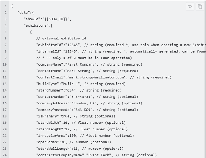 Note2: exhibitorId should be used when creating a new Exhibitor.